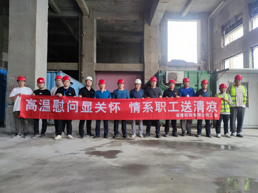 院公司總經(jīng)理葉金成同志及同行領(lǐng)導(dǎo)頂著烈日、冒著酷暑,來到工地一線實(shí)地調(diào)研指導(dǎo),并為全體參建員工送來關(guān)懷慰問。巖土所所長李金山同志將項(xiàng)目概況和現(xiàn)場進(jìn)展情況進(jìn)行了介紹。